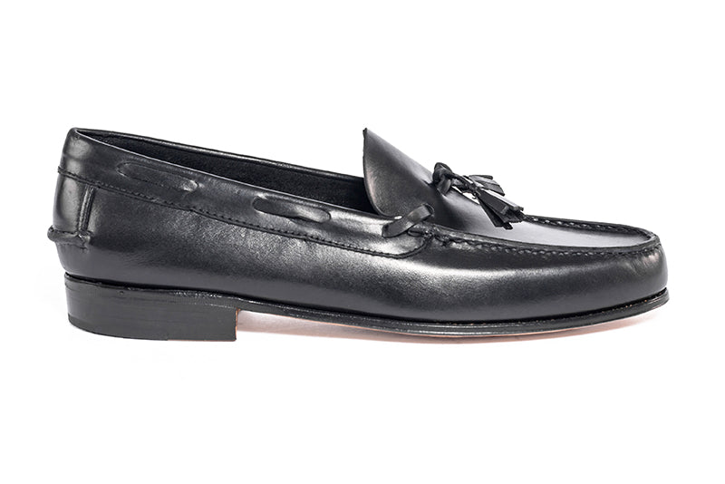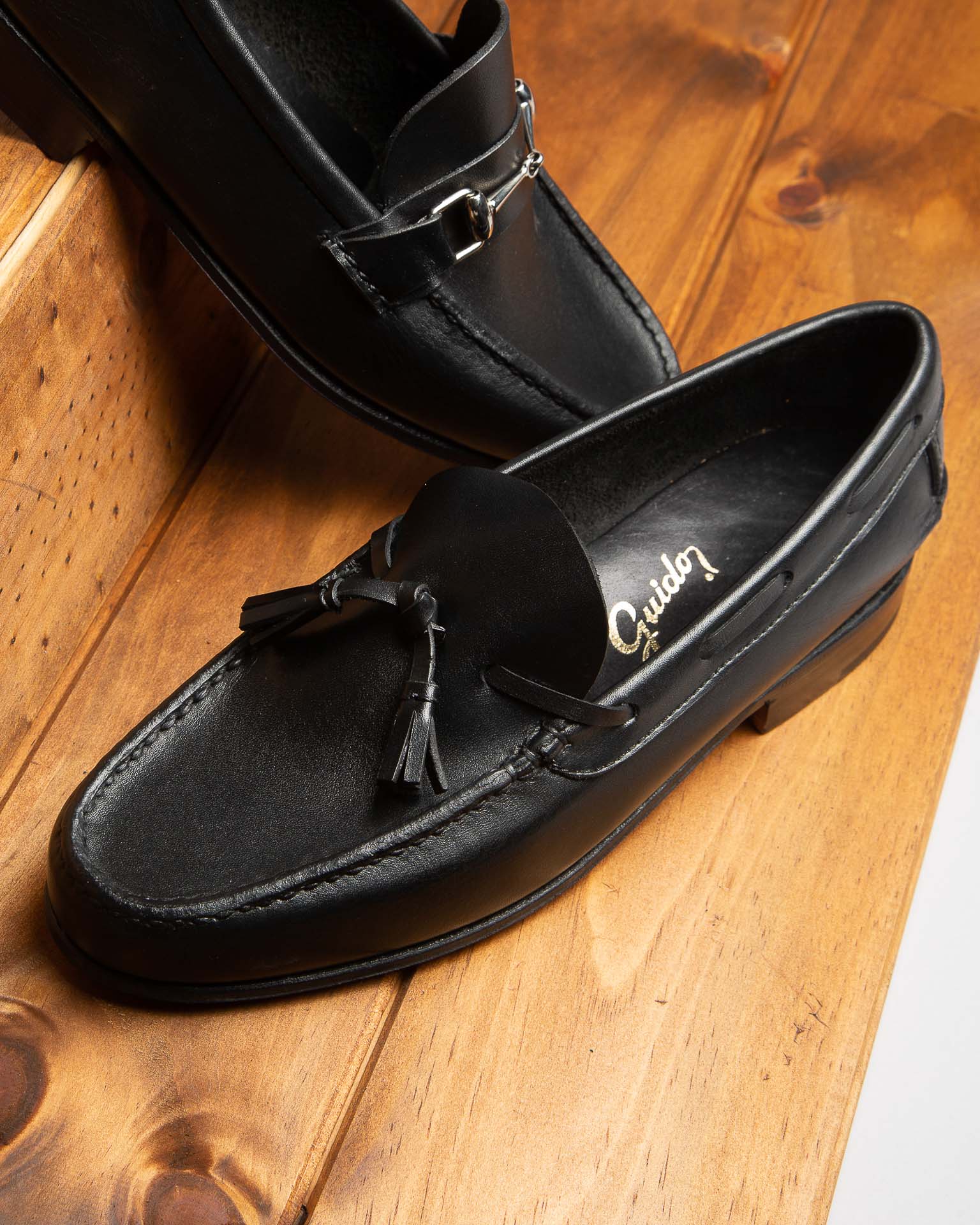 Art. 4221 - Mocasín GUIDO, confeccionado artesanalmente con 100% cuero vacuno. Elaborado y curtido a la anilina bajo un proceso de la más alta calidad, este cuero es una auténtica caricia para el pie. Su diseño único presenta un elegante aplique de flecos en cuero, combinando simplicidad y sofisticación en cada detalle.