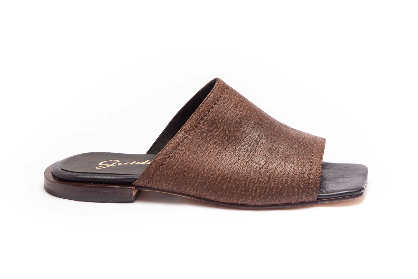 Art. 61109- Sandalia baja marca GUIDO elaborada artesanalmente con cuero 100% argentino. Sandalia con capellada entera de una tira que permite un excelente agarre y una comodidad sin igual. La textura del cuero y de la plantilla actúa como una caricia en el pie haciendo el producto extremadamente confortable y liviano. Esta sandalia está diseñada especialmente con un taco sobresalido para brindar mayor originalidad. Posee una punta cuadrada que la hace aún más distinguida para usar con un look casual.